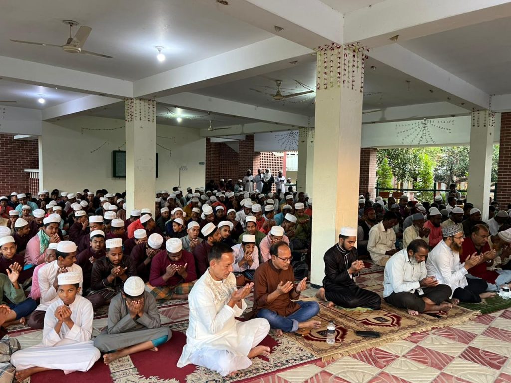 মাহফিলে দোয়া পরিচালনা করেন মাদ্রাসার শিক্ষা সচিব মুহতামিম আল্লামা মুফতি আ. কাদের।