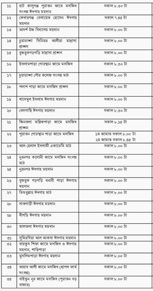 চুয়াডাঙ্গা শহর ও আশপাশ এলাকায় ঈদ-উল ফিতরের জামায়াতের সময়সূচি