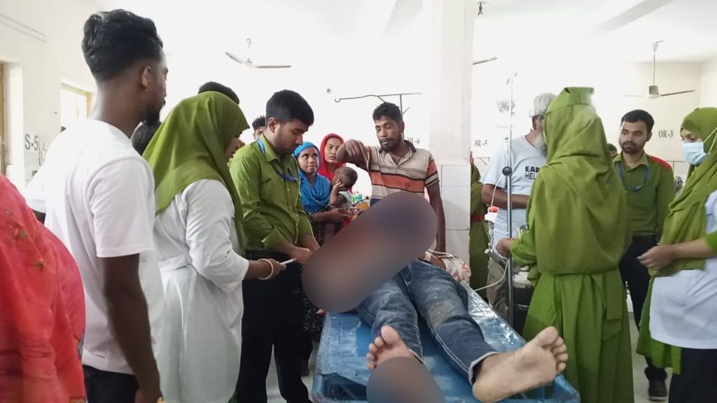 জরুরী বিভাগের কর্তব্যরত চিকিৎসক ডা: আব্দুল কাদের বলেন, গুরুতর আহত অবস্থায় একজনকে নিয়ে আসে। তার একটি হাত ভেঙ্গে গেছে। এছাড়া শরীরের বিভিন্নস্থানে গুরুতর আঘাতপ্রাপ্ত হয়েছে। তার অবস্থা আশঙ্কাজনক হওয়ায় প্রাথমিক চিকিৎসা শেষে উন্নত চিকিৎসার জন্য রাজশাহী মেডিকেল কলেজ হাসপাতালের রেফার্ড করা হয়।