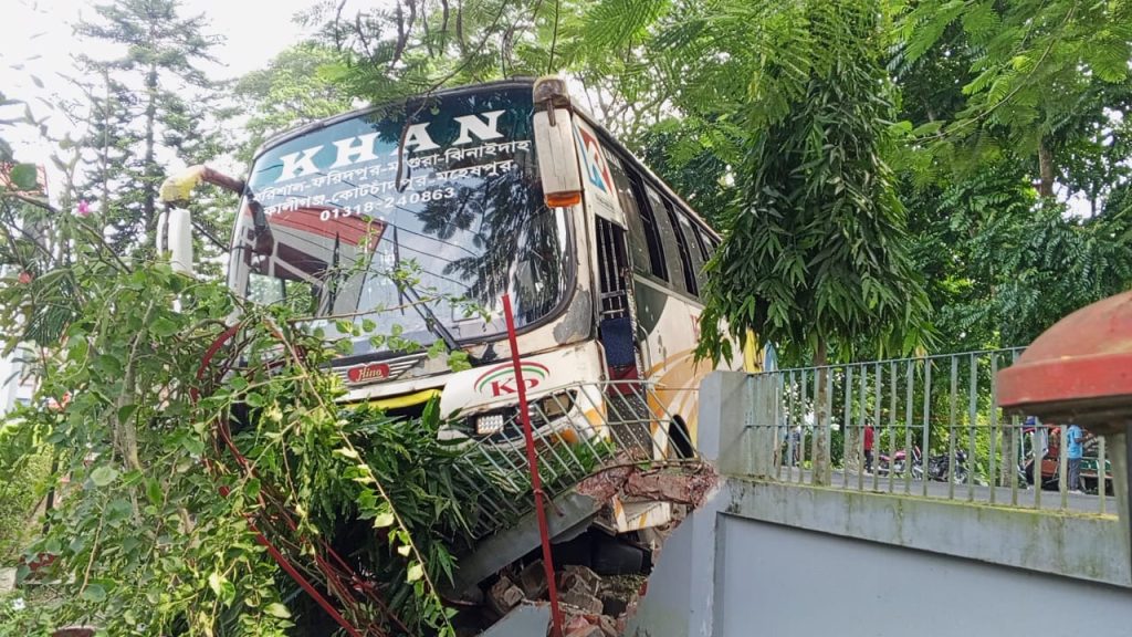 প্রত্যক্ষদর্শীরা জানান, ঝিনাইদহ থেকে চুয়াডাঙ্গামুখী “খান পরিবহন”-এর একটি বাস বিজিবি হাসপাতালের সামনে পৌঁছালে নিয়ন্ত্রণ হারিয়ে প্রাচীর ভেঙ্গে ভিতরে ঢুকে যায়। এতে বিপরীত দিক থেকে আসা মোটরসাইকেলটিকে ধাক্কা দেয়। একই সঙ্গে রাস্তার পাশে দাঁড়িয়ে থাকা একটি ব্যাটারি চালিত ইজিবাইককেও চাপা দেয়। এতে ঘটনাস্থলেই মোটরসাইকেলচালক মাহফুজুর রহমান নিহত হন এবং বাসের তিন যাত্রী আহত হন। দুর্ঘটনার পর বাসচালক ও হেলপার পালিয়ে যায়।
