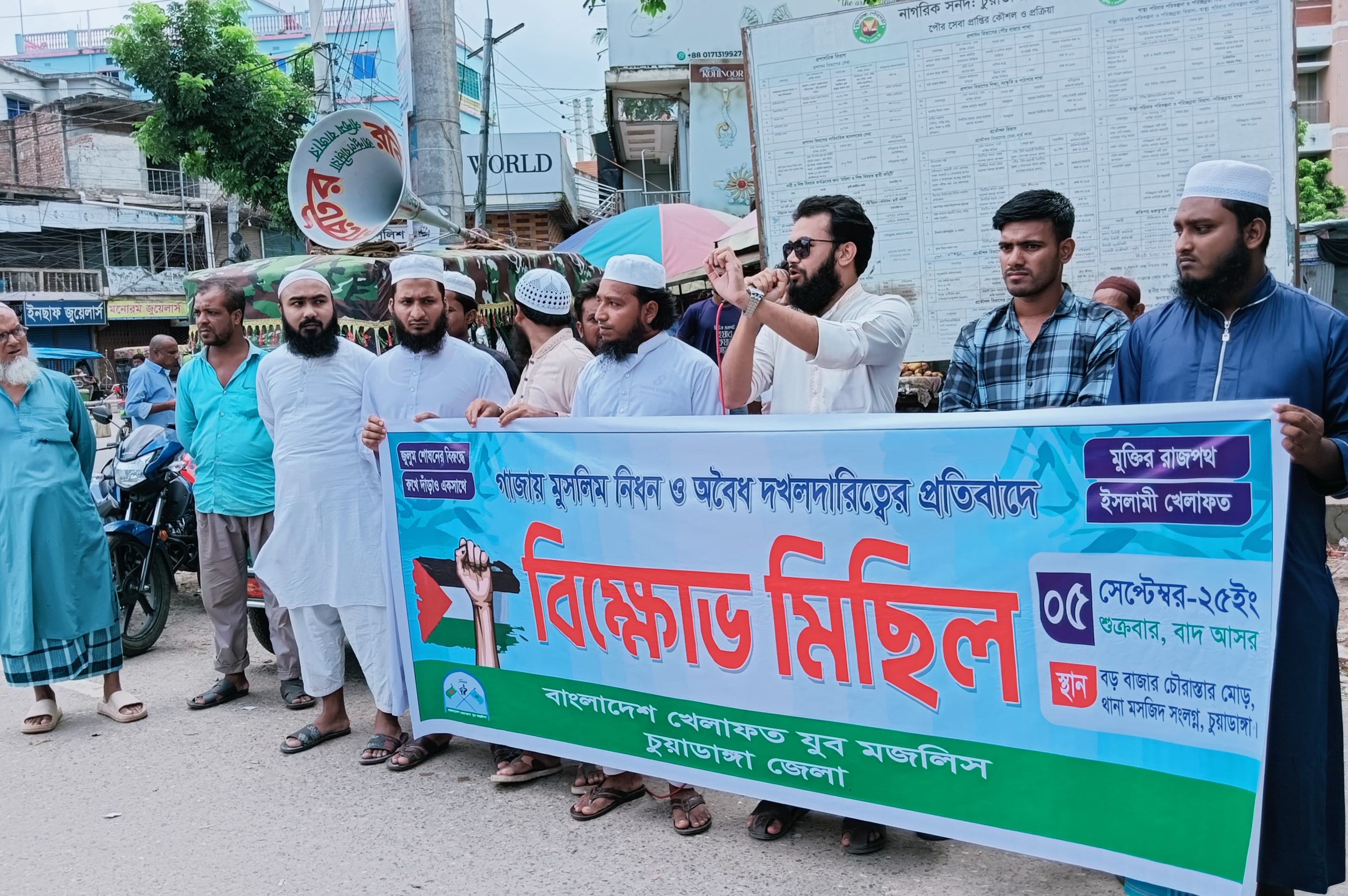 গাজায় মুসলিম নিধনের প্রতিবাদে চুয়াডাঙ্গায় খেলাফত যুব মজলিসের বি ক্ষো ভ