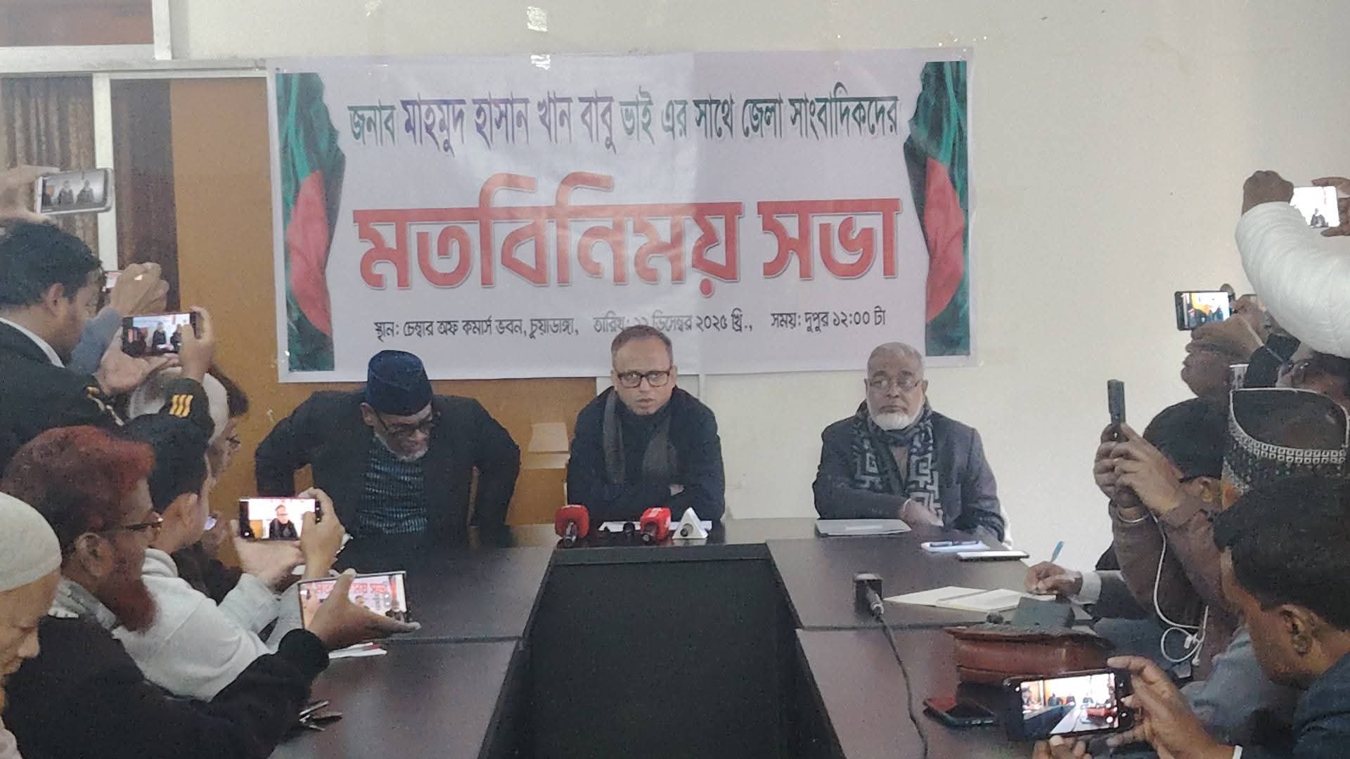চুয়াডাঙ্গা–১ আসনে ৮ দলীয় সমঝোতার ভিত্তিতে যাকে প্রার্থী ঘোষণা করা হবে, তাকে বিজয়ী করতে সবাইকে ঐক্যবদ্ধভাবে কাজ করার আহ্বান জানিয়েছেন