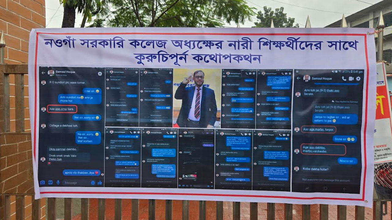 ছাত্রীদের আপত্তিকর মেসেজ পাঠানোসহ কুরুচিপূর্ণ মন্তব্য করার অভিযোগ উঠেছে নওগাঁ সরকারি কলেজের অধ্যক্ষ অধ্যাপক সামসুল হকের বিরুদ্ধে। ছাত্রীদের পাঠানো অধ্যক্ষের