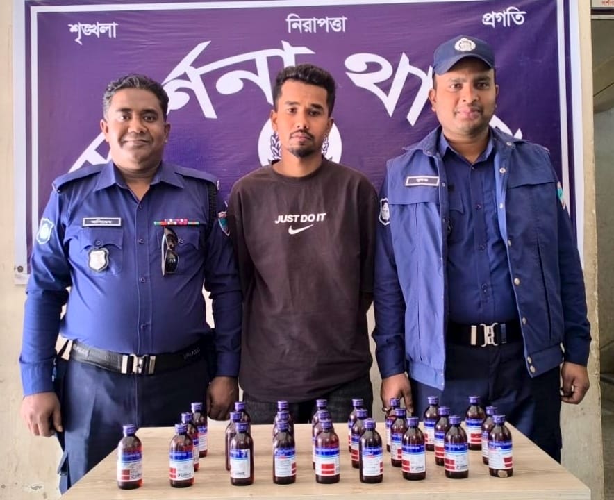 দর্শনায় ২৫ বোতল ‘এস্কাফ’ সিরাপসহ মিরাজুল আটক